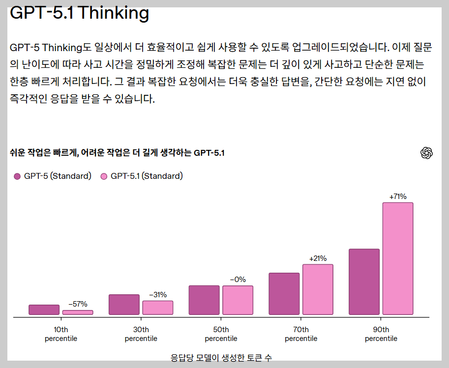 더불어, 모델의 사고력 자체가 강화되었다. GPT-5.1은 복잡한 추론(Reasoning) 문제나 다단계 과제 수행 시 기존 모델 대비 오류율을 현저히 낮추며 일관성을 유지한다. 이는 LLM의 고질적인 문제였던 "환각(Hallucination) 현상"을 줄이는 데 크게 기여할 전망이다