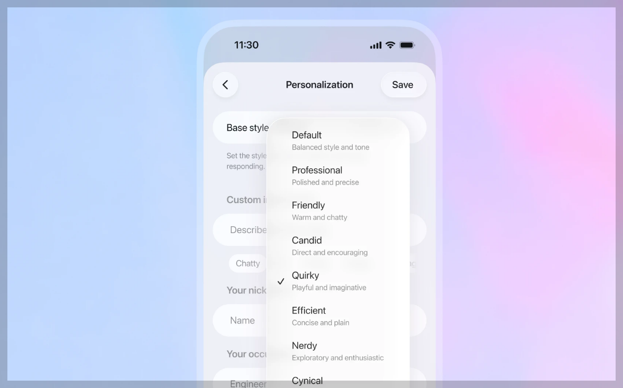 GPT-5.1의 가장 혁신적인 요소는 바로 "톤 컨트롤(Tone Control)" 기능이다. 사용자들은 이제 답변의 어조를 전문적, 캐주얼, 유머러스, 공손함 등 세분화된 옵션으로 지정할 수 있다. 이로써 사용자들은 매번 프롬프트에 스타일을 길게 명시하지 않아도, 일관되고 맥락에 맞는 맞춤형 출력을 얻을 수 있다. 이는 특히 마케팅, 콘텐츠 제작, 고객 서비스와 같이 스타일의 일관성이 중요한 전문 분야에서 생산성을 극대화할 것으로 기대된다.