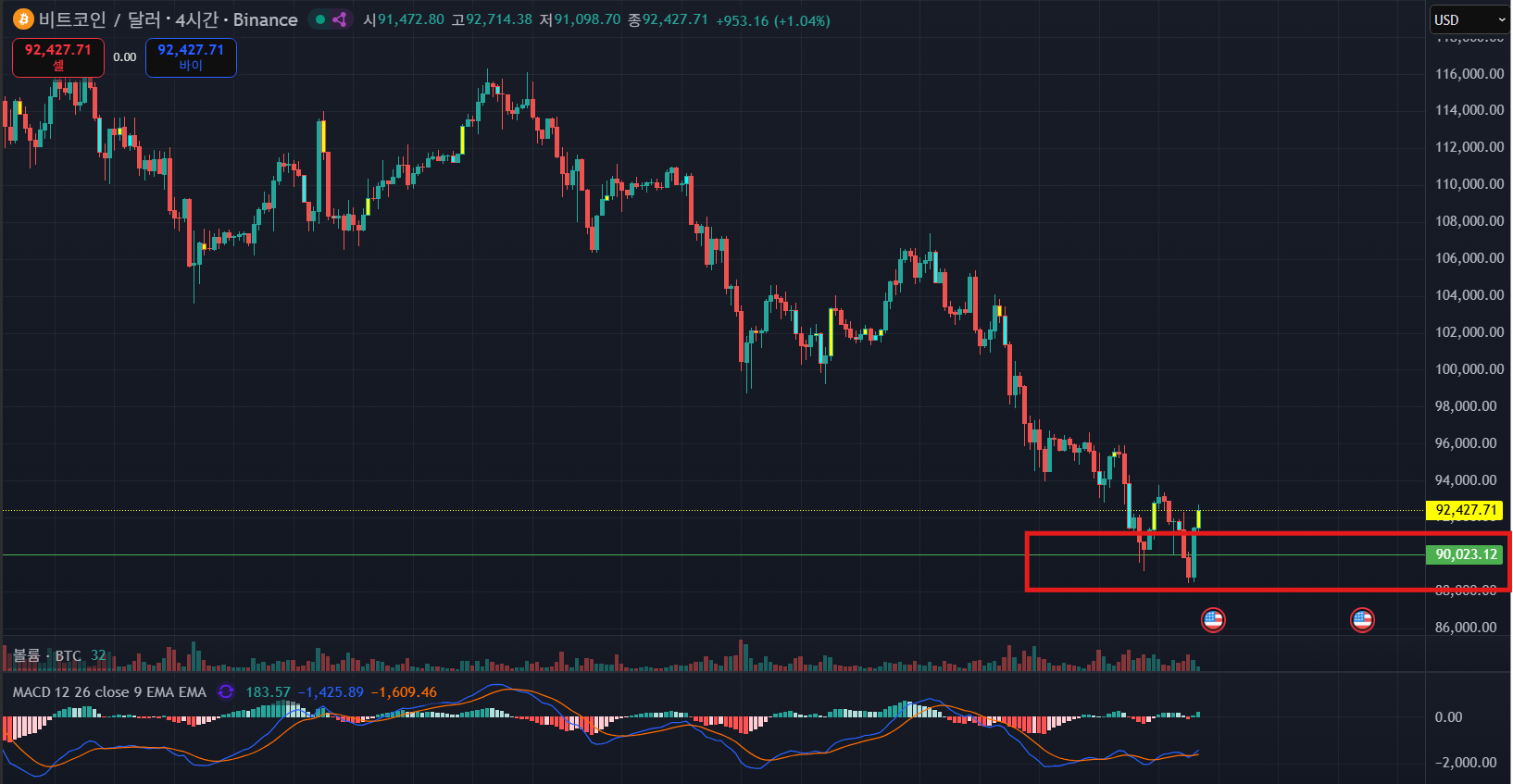현재 시장 참여자들이 주목하는 지점은 비트코인이 주요 심리적 지지선인 $9만 달러 부근을 어떻게 방어하느냐에 달려 있었습니다. 하지만 이 구간이 매번 저항선으로 작용하지 못하고 급격히 무너지는 모습은, "투자자들이 더 이상 단기 바닥 매수에 나서지 않고 있다"는 명확한 신호로 해석됩니다.